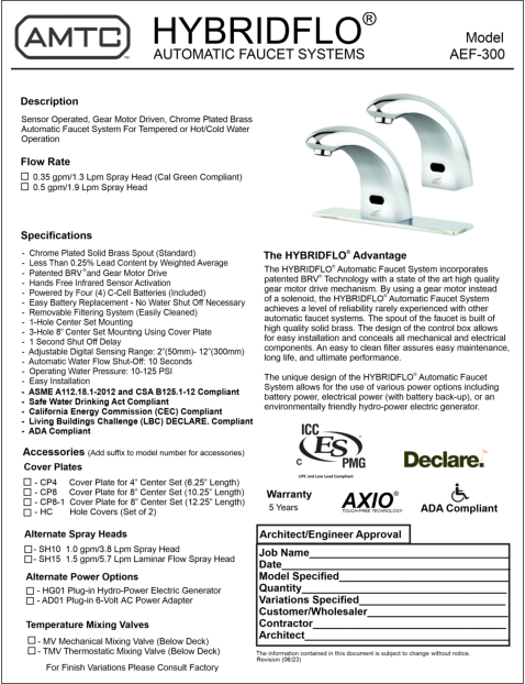 AEF-802 Series HYBRIDFLUSH® Top Mount Flush Valve